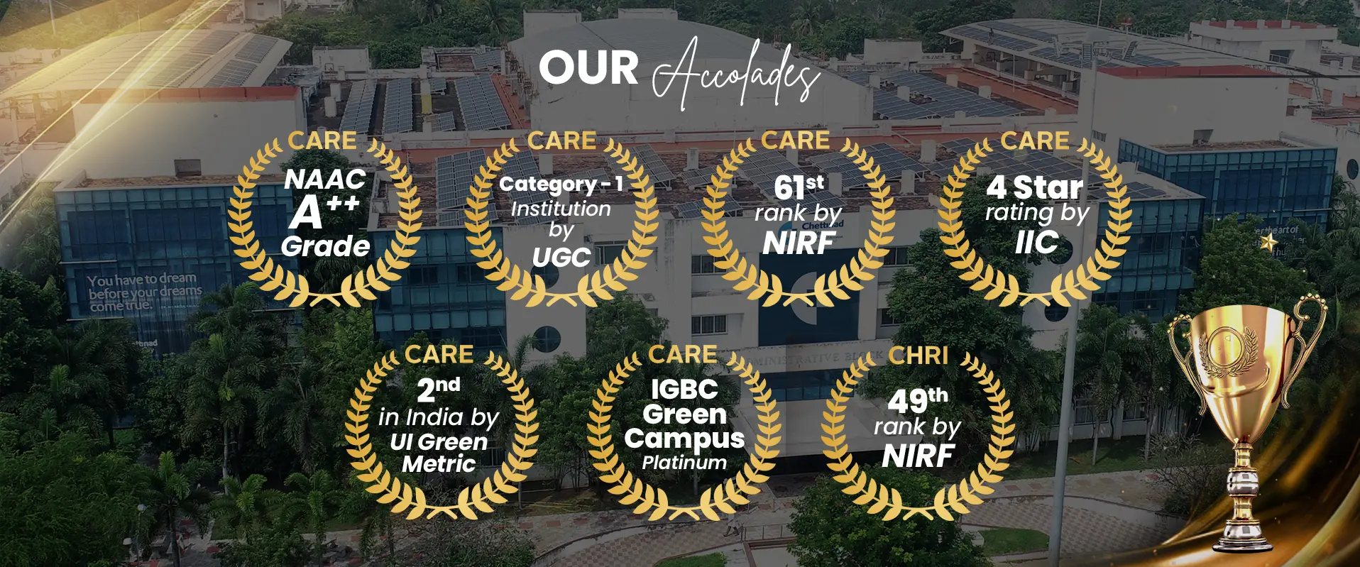 CARE has a 33.5 acre green campus at Kelambakkam that is on OMR, the IT & Educational Corridor that runs from Chennai to Pondicherry.